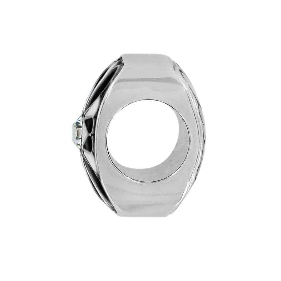 Hand-enameled details add shine to this black and white pillow-shaped bead inspired by a trip to Africa.