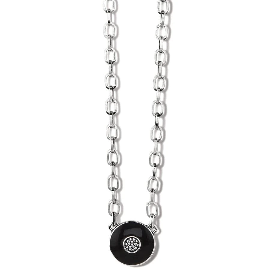 A petite silhouette with hand-enameled accents – this necklace is the perfect “little black jewelry” that will mix nicely with all the black, two-tone and silver Meridian styles.