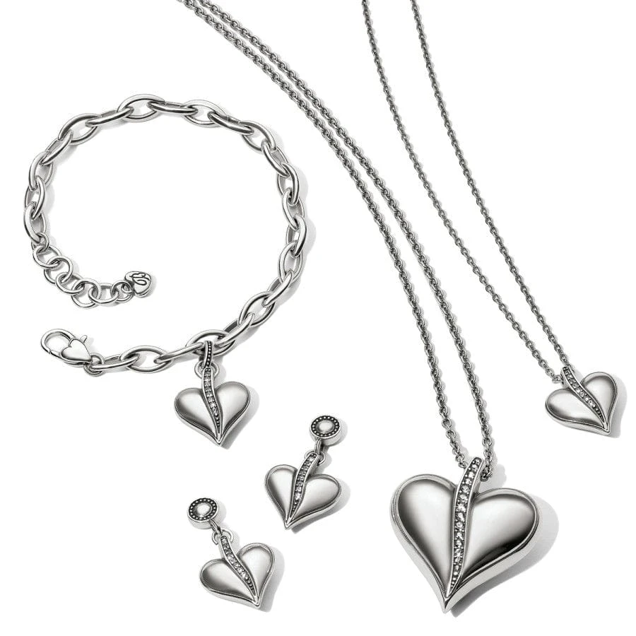 Reminiscent of handmade, sculpted fine sterling silver jewelry, this necklace has a pillow-shaped heart pendant with a river of fine crystals – making it perfect for