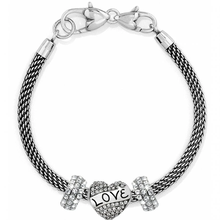Imagine her delight when she unwraps this beautiful bracelet, with two fine quality crystal-encrusted spacers and a sparkling heart charm bearing one of the most important words in the world: Love.