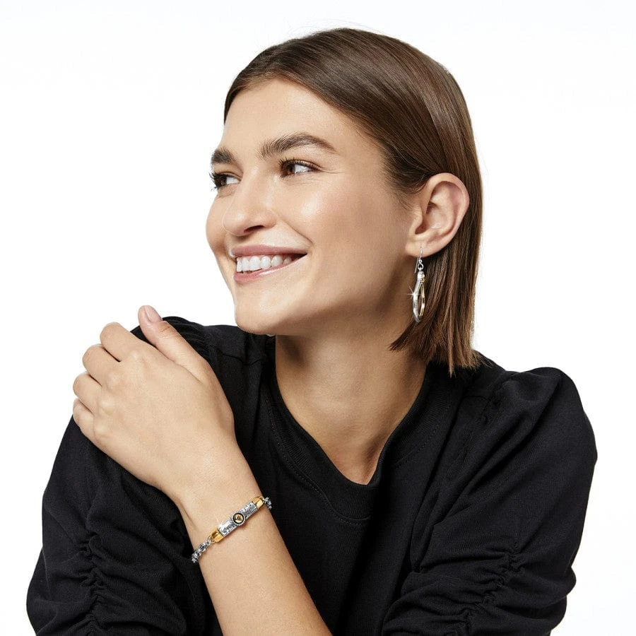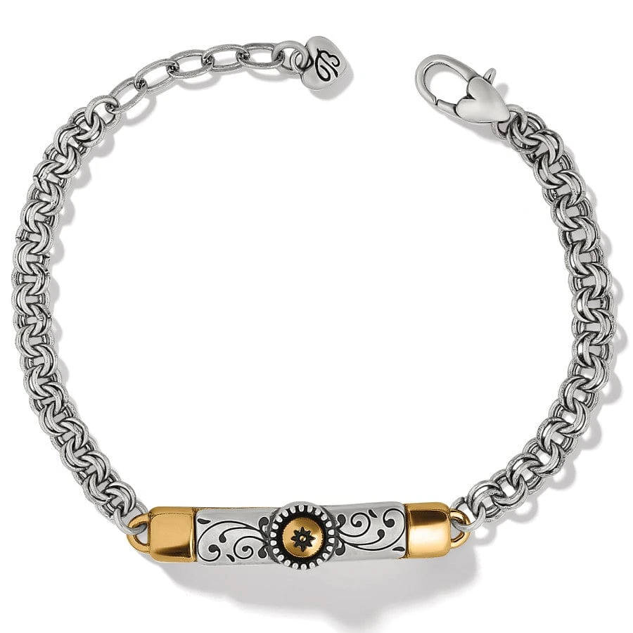 Intricate, delicate vine-like etchings inspired by the masks worn during Venice’s carnival season add a magical quality this mixed metal bar bracelet.